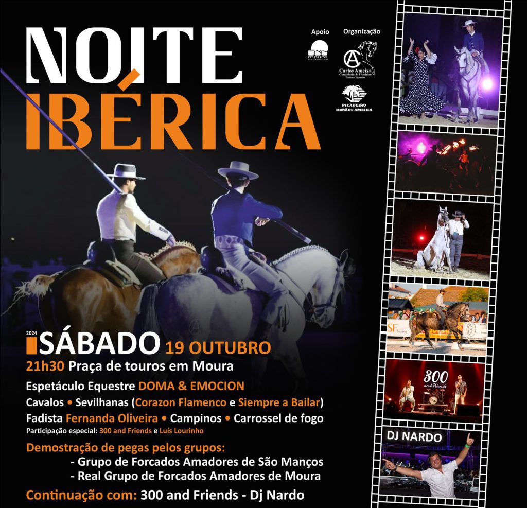 O Picadeiro Carlos Ameixa assinala 25 anos em novembro, mas a festa faz-se este sábado dia 19 de outubro, com a “Noite Ibérica”, às 21h30, na Praça de Touros de Moura. Um espectáculo que está pela primeira vez em Moura, depois de passar por outras localidades do país.